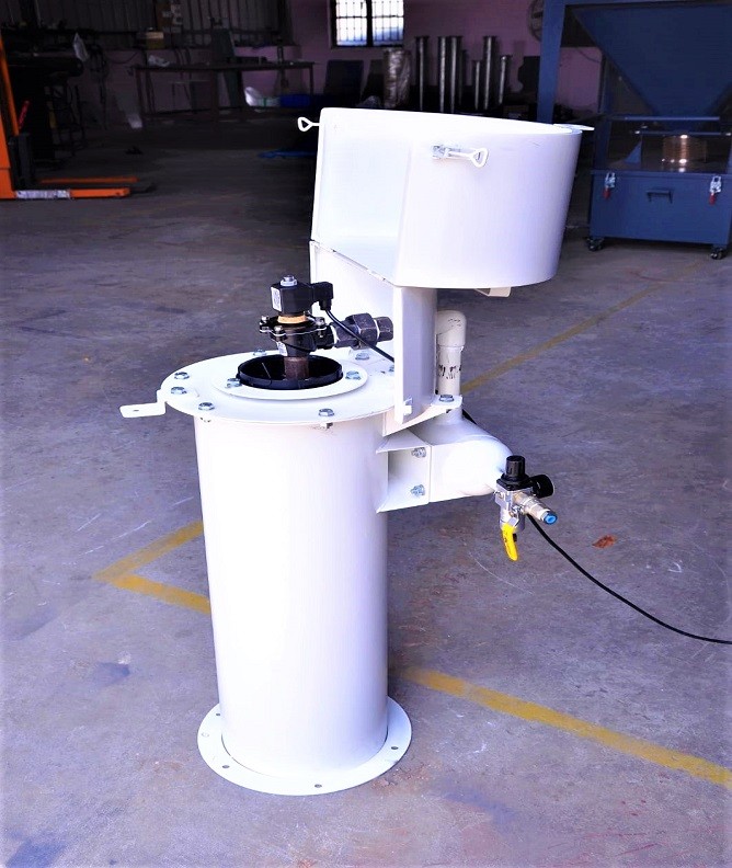 Dust from silos or hoppers is collected by cartridge filter element and dropped back the products in hopper or Silo after the action of the compressed air pulse jet which removes dust from the filter. A top cover that protects from Weathering.