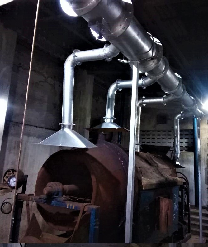 The dust collectors are designed so to provide cyclonic and rotation effect to separate dense particulate matter in the flue gases. A high circulating air flow is allowed to travel in a helical pattern from the top of the dust collector. This creates high inertia and this ideal rotation effect will force the dense particulate matter to settle at the bottom of the cone, which is removed manually or mechanically.